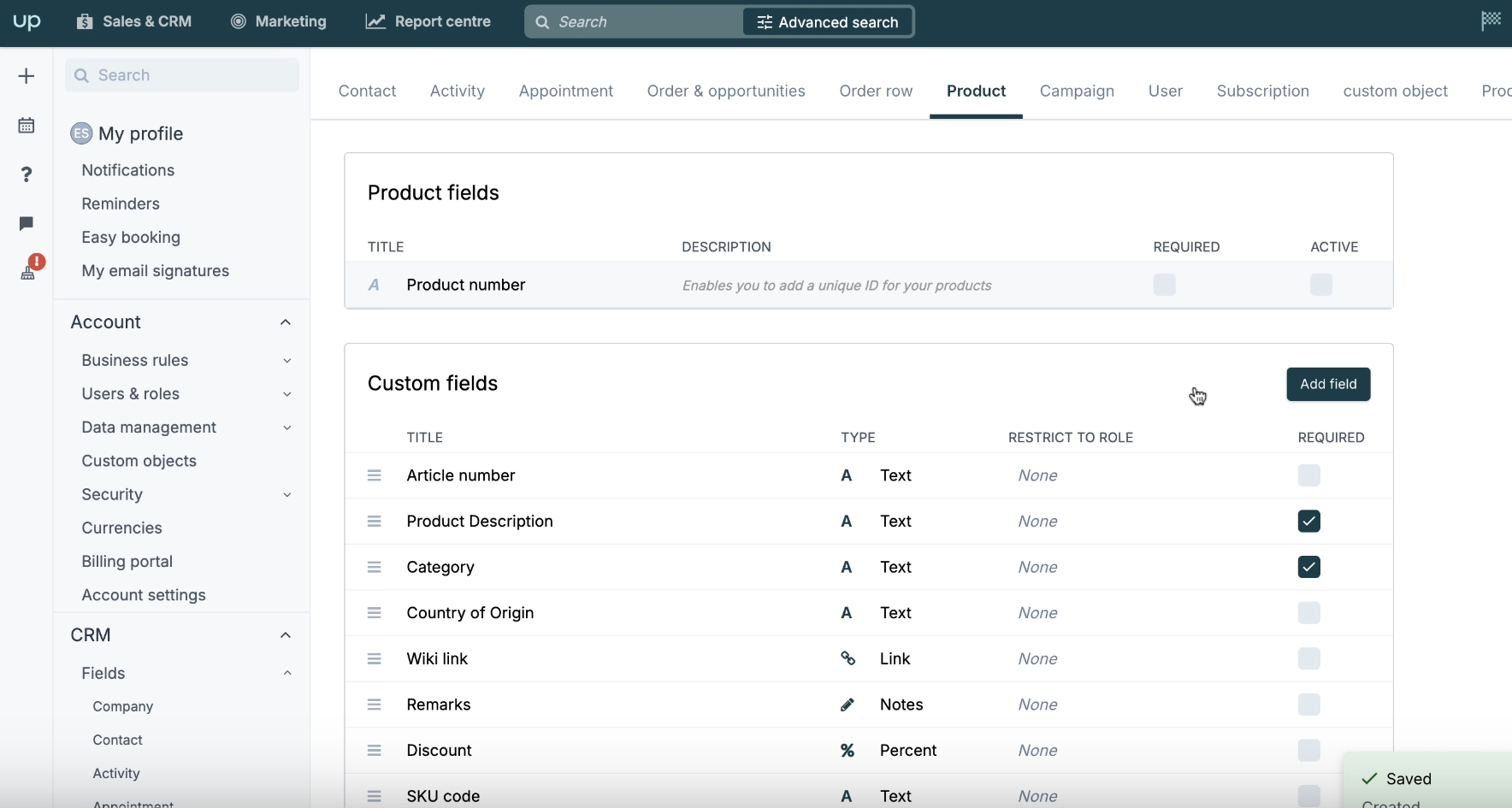 See Upsales documentation to learn how to add a new custom field.