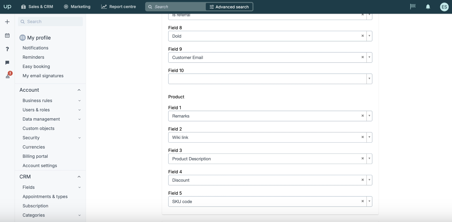 Assume you have the following custom product fields in Upsales: