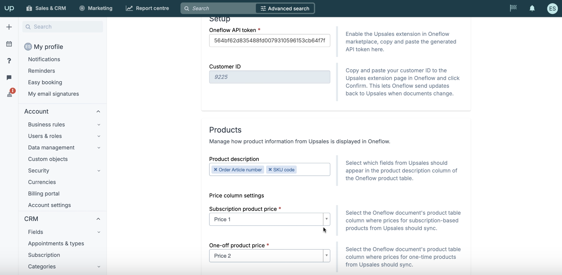 Mapping Data Fields from Upsales to Oneflow